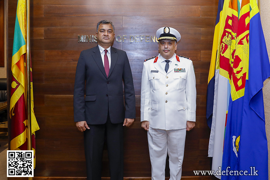 September 26, 2025The Military Attaché to the Royal Embassy of Saudi Arabia in New Delhi and Colombo, Captain (Navy) Hussain Othman Al kowaileet, paid a courtesy call on the Defence Secretary, Air Vice Marshal Sampath Thuyacontha (Retd), at the Ministry of Defence today (26 September).
