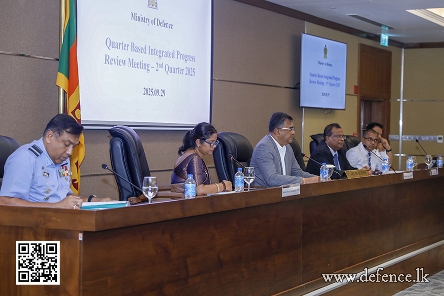 September 30, 2025The Defence Secretary, Air Vice Marshal Sampath Thuyacontha (Retd), co-chaired the Quarter Based Integrated Progress Review Meeting 2025 for the Second Quarter of the Ministry of Defence yesterday (29 September) at the Ministry auditorium, together with Mr. S.S. Mudalige, Director General of the Department of Project Management and Monitoring of the Ministry of Finance.