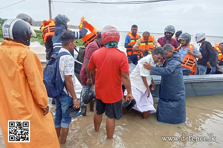 The Sri Lanka Navy has been operating at full capacity since 22 November, continuously providing essential disaster relief services to affected communities in the Southern, Eastern, Northwestern, and North Central provinces. Through swift and coordinated action, Navy relief teams have successfully evacuated 911 people whose lives were endangered by rising waters and have ensured that all affected individuals, including schoolchildren, were moved to safe locations.
