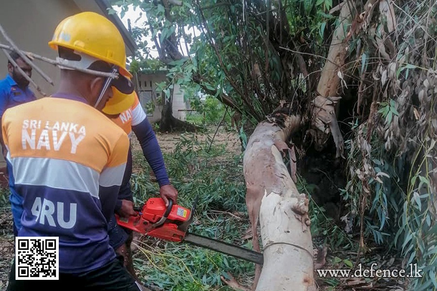 Navy teams are conducting disaster relief operations in close coordination with the Disaster Management Centre (DMC). Beyond rescue missions, naval personnel are removing trees felled by strong winds and transporting essential supplies to isolated families using small boats. Furthermore, the Sri Lanka Navy has placed additional relief teams on standby across all naval commands, ready for immediate deployment in case of any emergency.