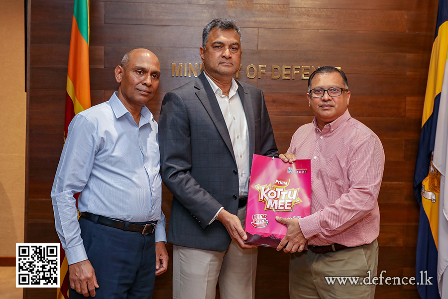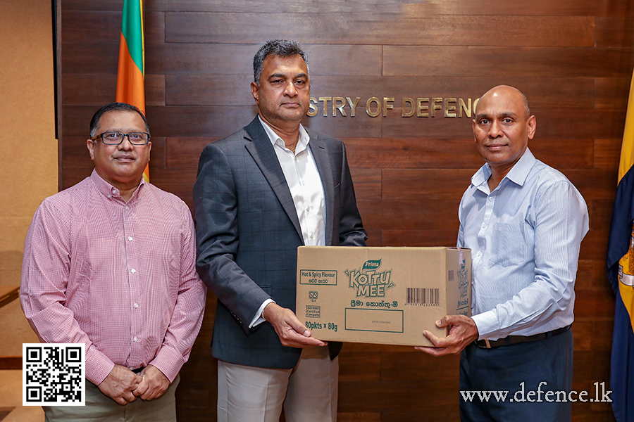 The symbolic acceptance of this significant donation took place at the Ministry of Defence premises, received by the Secretary of Defence, Air Vice Marshal Sampath Thuyacontha (Retired). Representing the Prima Group, Mr. Sajith Gunaratne, General Manager of Ceylon Agro Industries Limited, and Mr. Sanjeeva Perera, General Manager of Ceylon Grain Elevators, officially handed over the stock of dry rations.