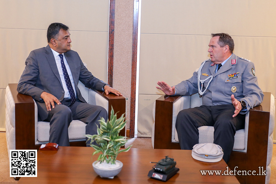 December 05, 2025The Defence Attaché of the Federal Republic of Germany Embassy, Colonel Klaus Willi Merkel, paid a courtesy call on the Defence Secretary, Air Vice Marshal Sampath Thuyacontha (Retd), at the Ministry of Defence today (05 December).