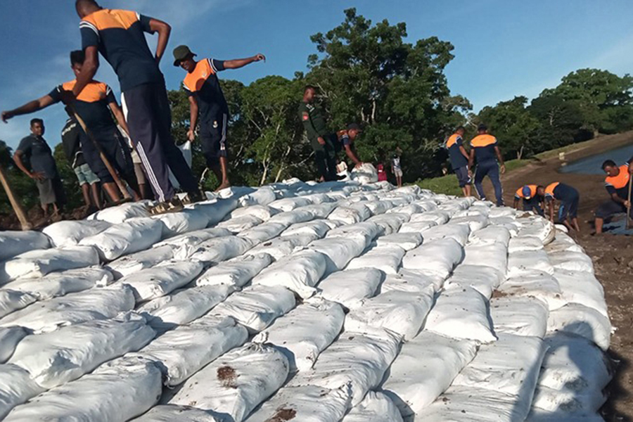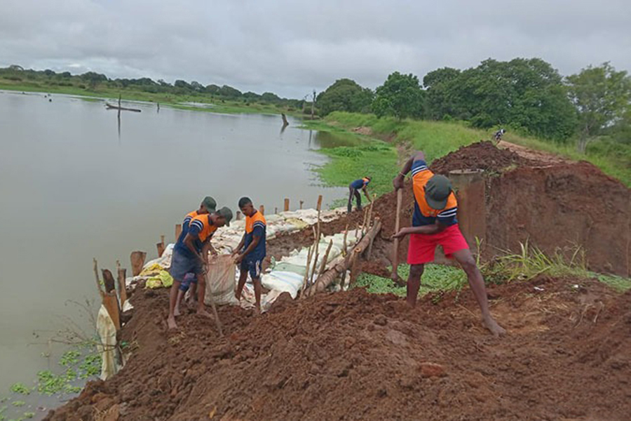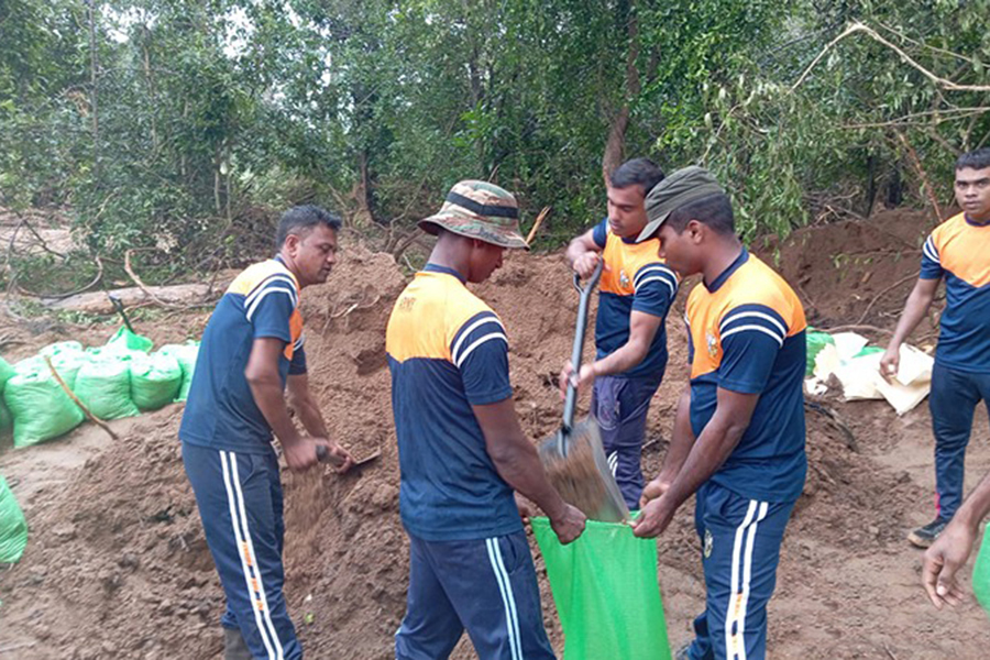 Troops are currently engaged in repair work at the Siyambalagaswewa Tank, where urgent rehabilitation is underway to stabilize the structure and ensure uninterrupted water supply to surrounding communities.