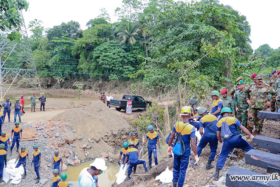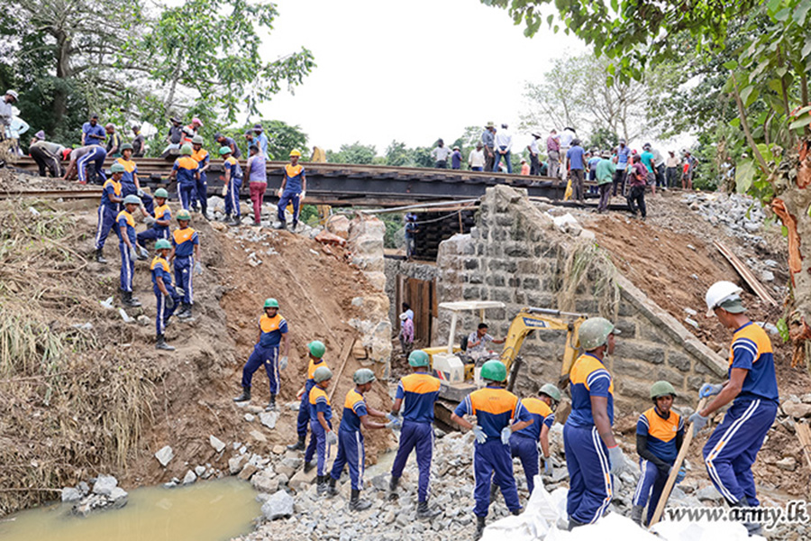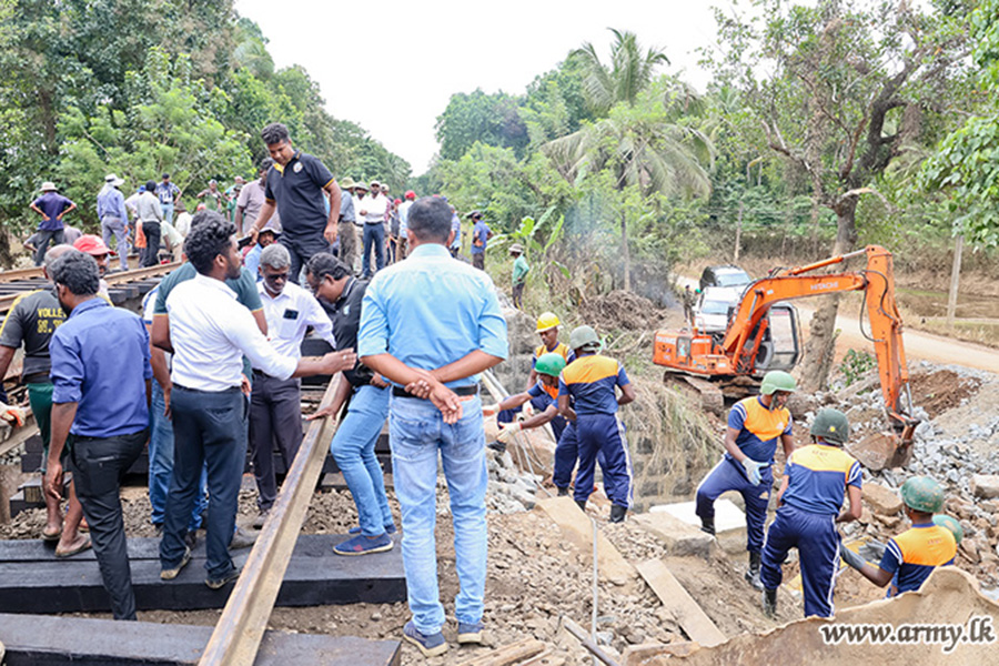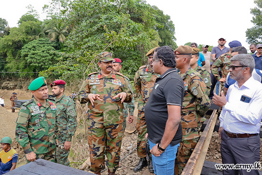 He also visited the Bujjomuwa Bridge near the Bujjomuwa Railway Station, which had been damaged by flooding, and observed the ongoing repair work. A temporary single-lane passage has been constructed through the dedicated efforts of Army personnel.