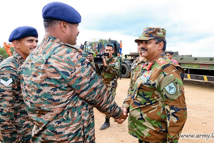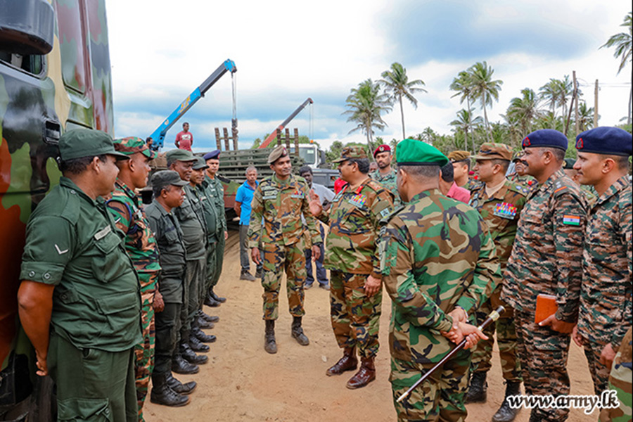 In addition, the Army Chief inspected the Thoduwawa Bridge on the Chilaw–Thoduwawa road, which had collapsed due to the recent disaster. The bridge, donated by the Indian Army, was transported with the assistance of the Sri Lanka Army and officially handed over to the Road Development Authority (RDA).