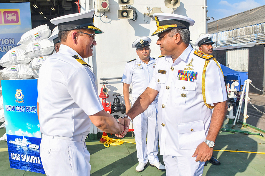 The handover of humanitarian aid was coordinated by the High Commission of India in Sri Lanka. The occasion was attended by the Deputy High Commissioner of India to Sri Lanka, Dr. Satyanjal Pandey, the Deputy Minister of Ports and Civil Aviation, Hon. Janitha Ruwan Kodithuwakku, the Commander Western Naval Area, Rear Admiral Jagath Kumara, the Commanding Officer ICGS SHAURYA, Deputy Inspector General Arun Singh and a group of officials.