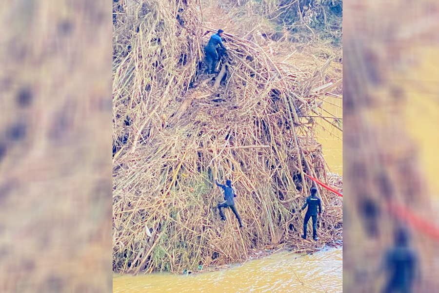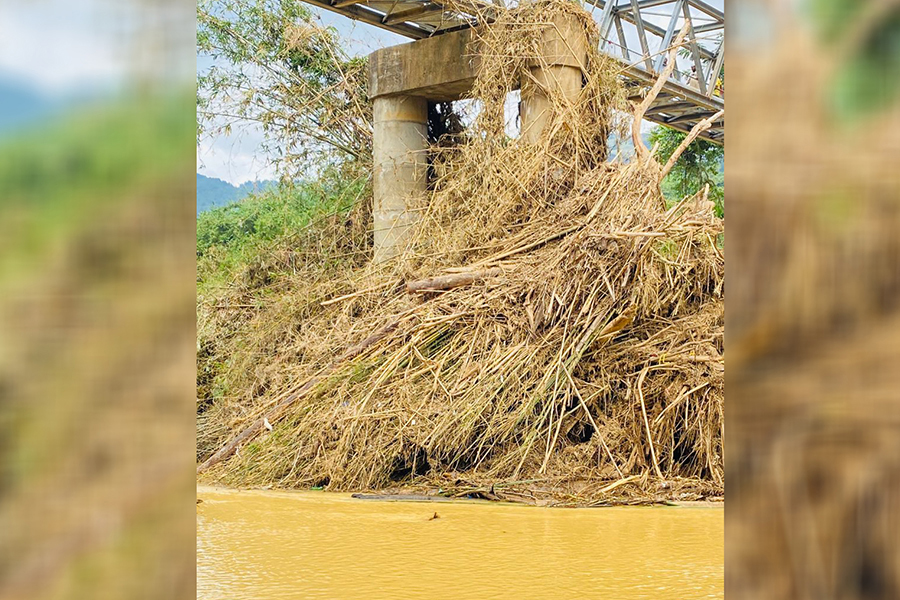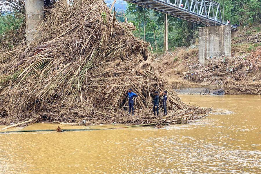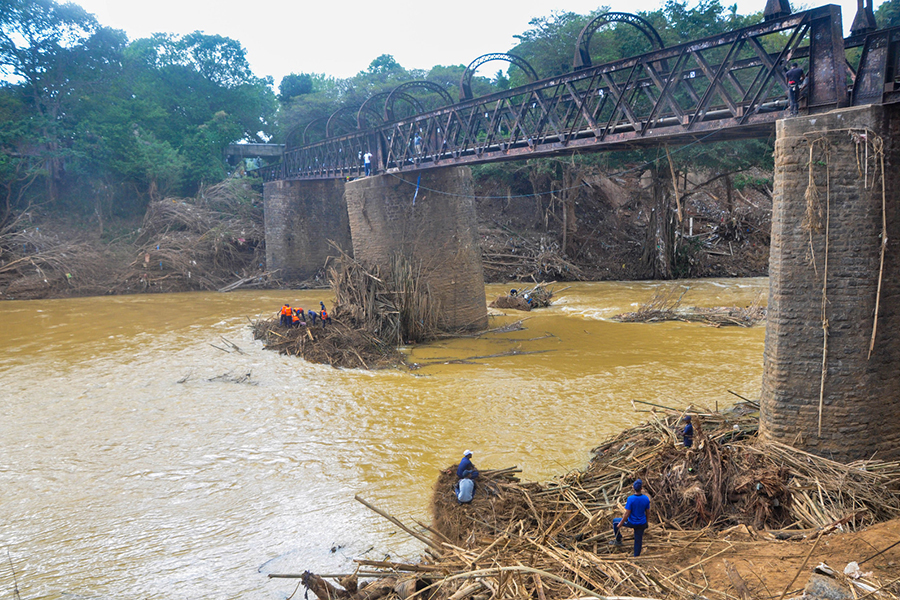 Adverse weather from the cyclone caused a significant rise in the Mahaweli River, sweeping large quantities of debris, including logs and tree remains, into key bridges. This obstruction posed a dual threat, impeding orderly water drainage and risking further damage to critical infrastructure.