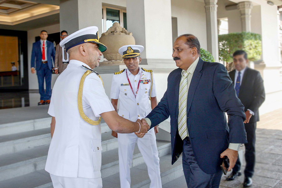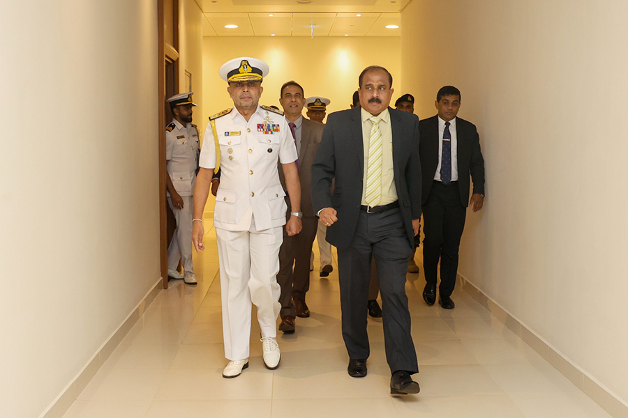 Upon arrival at the Navy Headquarters, the Deputy Minister was received by the Commander of the Sri Lanka Navy, Vice Admiral Kanchana Banagoda.