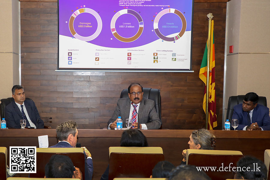 The meeting was attended by the Defence Secretary, the Director General of the Disaster Management Centre (DMC), UN Resident Coordinator in Sri Lanka, representatives from the European Union (EU), the World Bank (WB), the Asian Development Bank (ADB), the United Nations Development Programme (UNDP), the Asian Disaster Preparedness Center (ADPC), the National Planning Department (NPD) and senior state officials from line ministries.