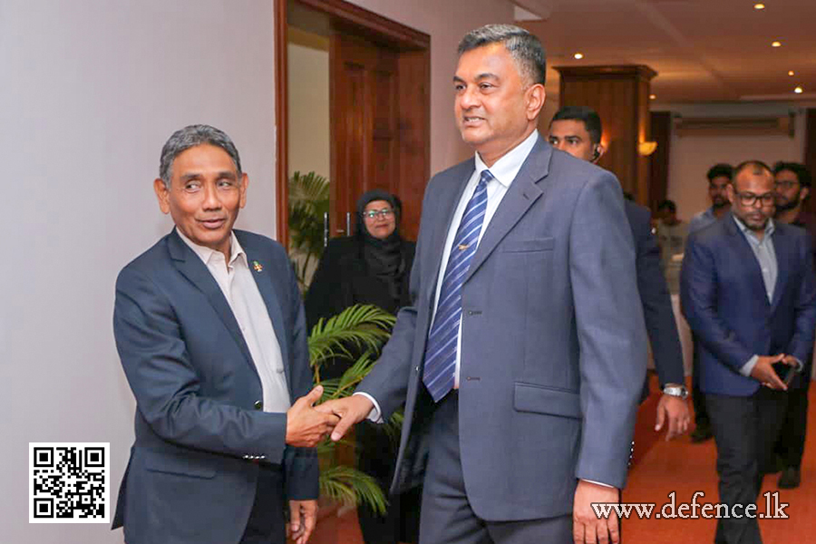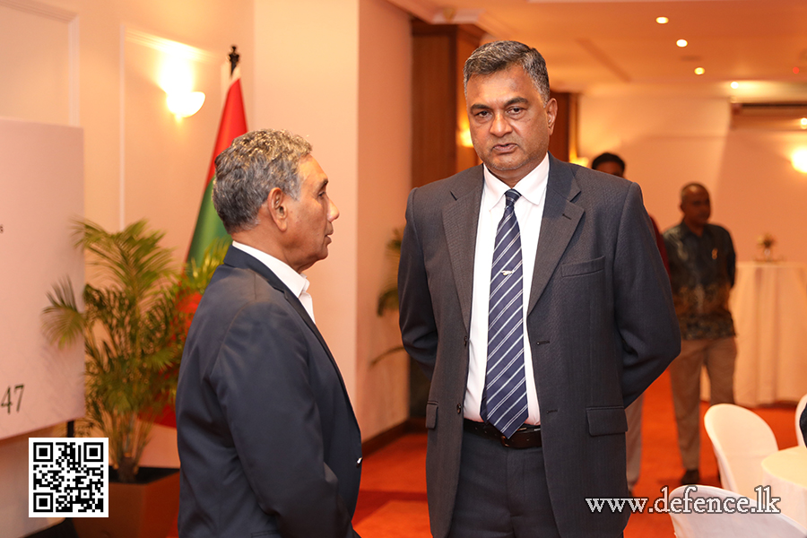 The Defence Secretary, Air Vice Marshal (Retd.) Sampath Thuyacontha, attended a special “Maahefun” reception hosted by H.E. Masood Imad, the High Commissioner of the Republic of Maldives to Sri Lanka, today (16 February).
