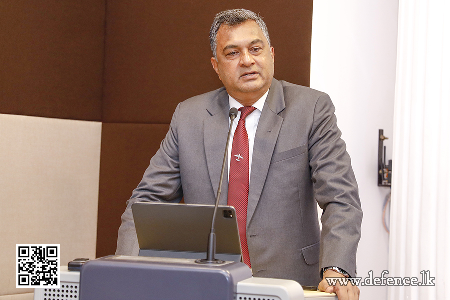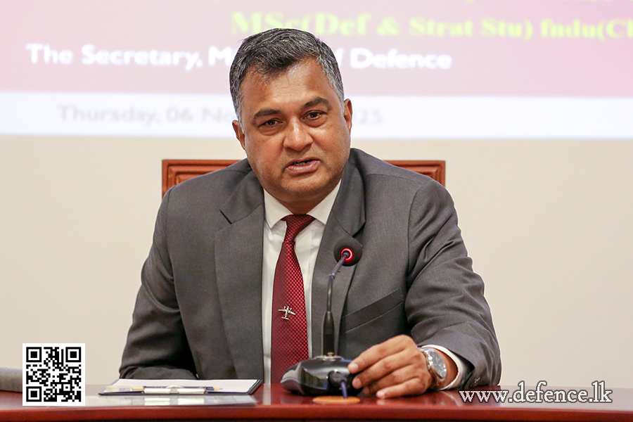 නොවැම්බර් 06, 2025ආරක්ෂක ලේකම් එයාර් වයිස් මාර්ෂල් සම්පත් තුයියකොන්තා (විශ්රාමික), සිය විශේෂඥ දැනුම හා පරිණත දැනුම බෙදා ගනිමින්, අද (නොවැම්බර් 6) දින කොළඹ පිහිටි ජාතික ආරක්ෂක විද්යායතනයේ ශිෂ්ය නිලධාරීන් අමතමින් දේශනයක් පවත්වන ලදී.