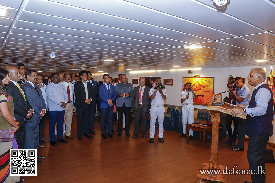 ඉන් අනතුරුව, නෞකාවේ අණදෙන නිලධාරී විසින් නෞකාව පිළිබඳ කෙටි හැඳින්වීමක් සිදු කළ අතර, ඉන් පසු සම්භාවනීය අමුත්තන් නෞකාවේ නිරීක්ෂණ සංචාරයක් සඳහා කැටුව ගියේය.