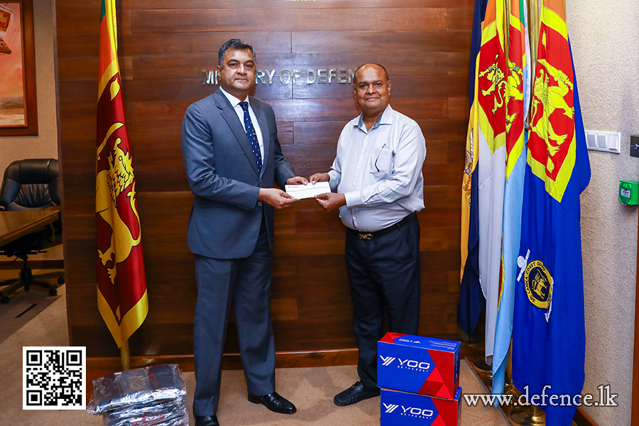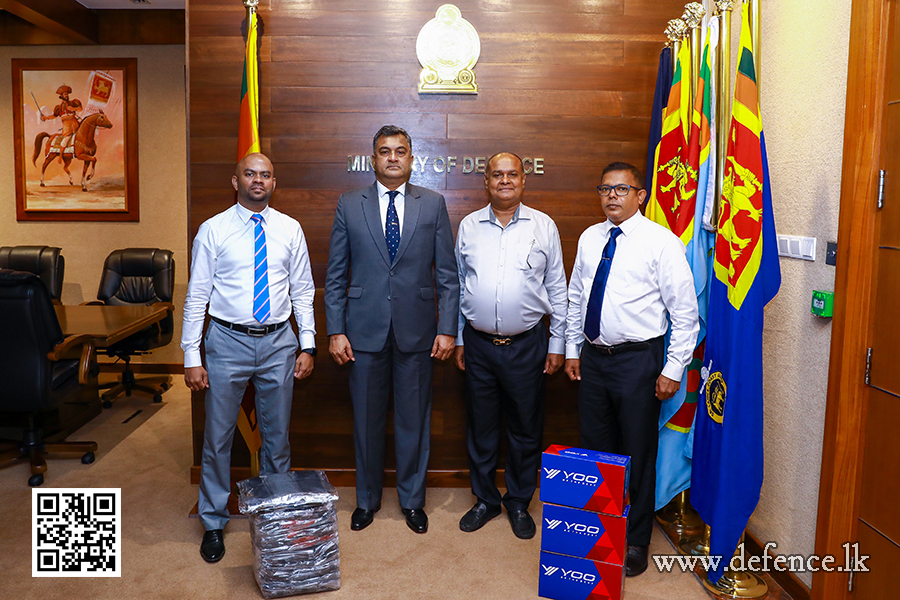 රුපියල් මිලියන 6.7ක වටිනාකමකින් යුත් සපත්තු යුගල 1,000ක් සහ මේස් යුගල 5,000කින් සමන්විත මෙම මානුෂීය පරිත්යාගය, ආරක්ෂක ලේකම් එයාර් වයිස් මාර්ෂල් සම්පත් තුයියකොන්තා (විශ්රාමික) වෙත අද (දෙසැම්බර් 18) දින ආරක්ෂක අමාත්යාංශ පරිශ්රයේදී ‘Yoo Brands’ පුද්ගලික සමාගමේ කළමනාකාර අධ්යක්ෂ හේමන්ත පෙරේරා මහතා විසින් නිල වශයෙන් පිළිගන්වනු ලැබිය.