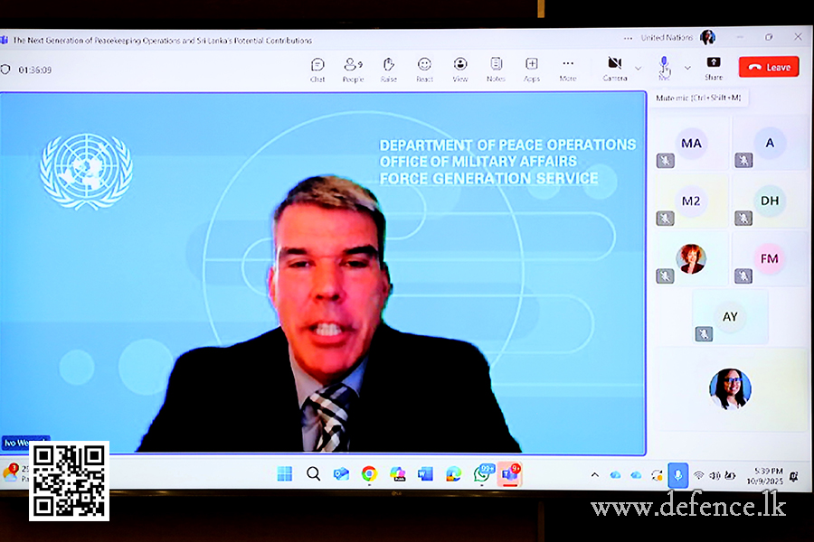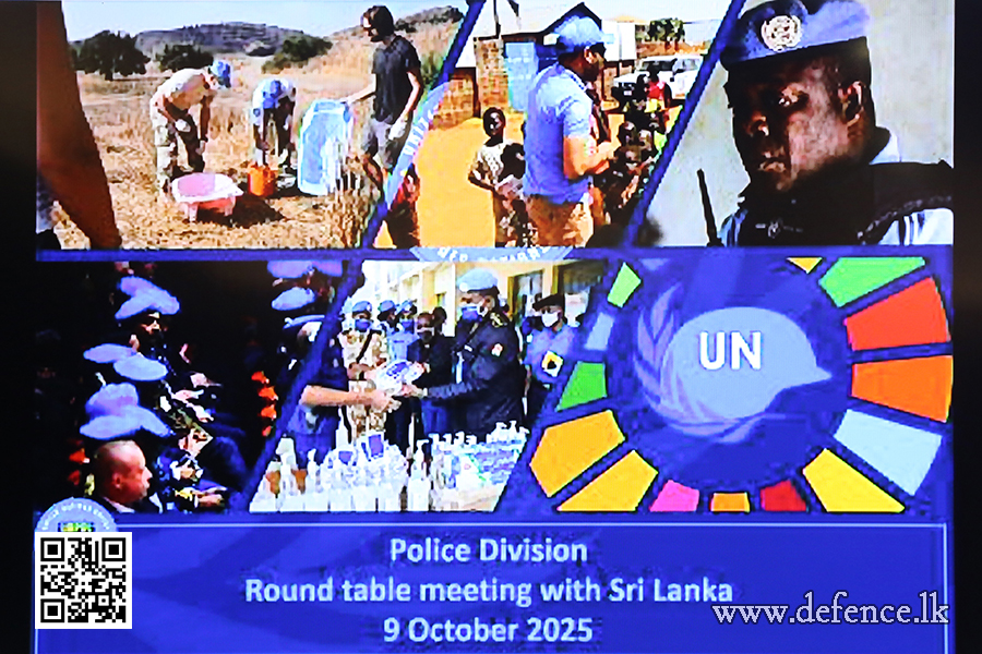 ஒக்டோபர் 10, 2025ஐக்கிய நாடுகள் சபையுடன் இணைந்து, இலங்கை பாதுகாப்பு அமைச்சு, "அடுத்த தலைமுறை அமைதி காக்கும் நடவடிக்கைகள் மற்றும் இலங்கையின் சாத்தியமான பங்களிப்புகள்" என்ற தலைப்பில் அக்டோபர் 09 (2025) அன்று பாதுகாப்பு அமைச்சில் உயர்மட்ட வட்டமேசை கலந்துரையாடலை நடத்தியது. கலப்பின வடிவத்தில் நடைபெற்ற இந்த நிகழ்வில், ஐ.நா. அமைதி காக்கும் நடவடிக்கைகள் துறை (DPO), மனித உரிமைகள் உயர் ஸ்தானிகர் அலுவலகம் (OHCHR) மற்றும் இலங்கையின் பாதுகாப்பு மற்றும் சட்ட அமலாக்கத் துறைகளைச் சேர்ந்த சிரேஷ்ட அதிகாரிகள் கலந்து கொண்டனர்.
