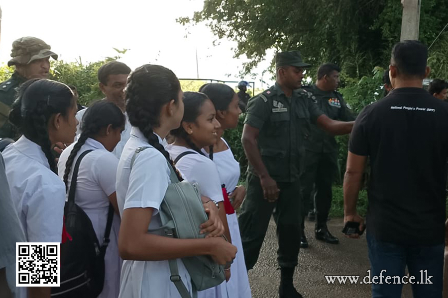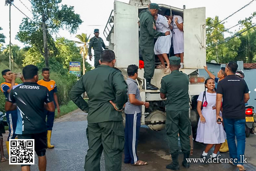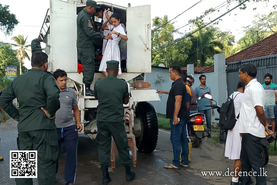 வெள்ளத்தால் பாதிக்கப்பட்ட அக்குரெஸ்ஸ - சியம்பலாகொட பாதையில் உயர்தர மாணவர்கள் மற்றும் பொதுமக்களுக்கு போக்குவரத்து வசதிகளை வழங்க இலங்கை இராணுவ 3 (V) கெமுனு பிரிவின் படையினர் உதவி