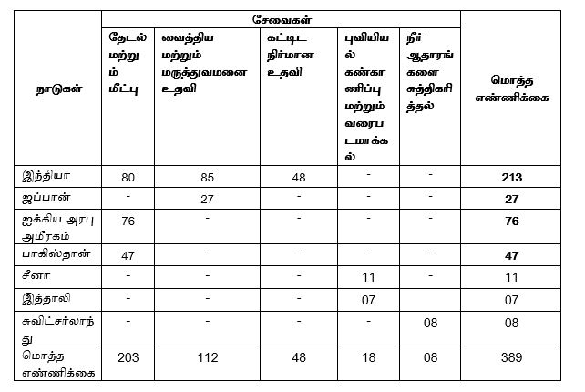 சீனா / பாகிஸ்தான் / ரஷ்யா / ஜப்பான் / உலக உணவுத் திட்டம் / ஜெர்மனி / நெதர்லாந்து |