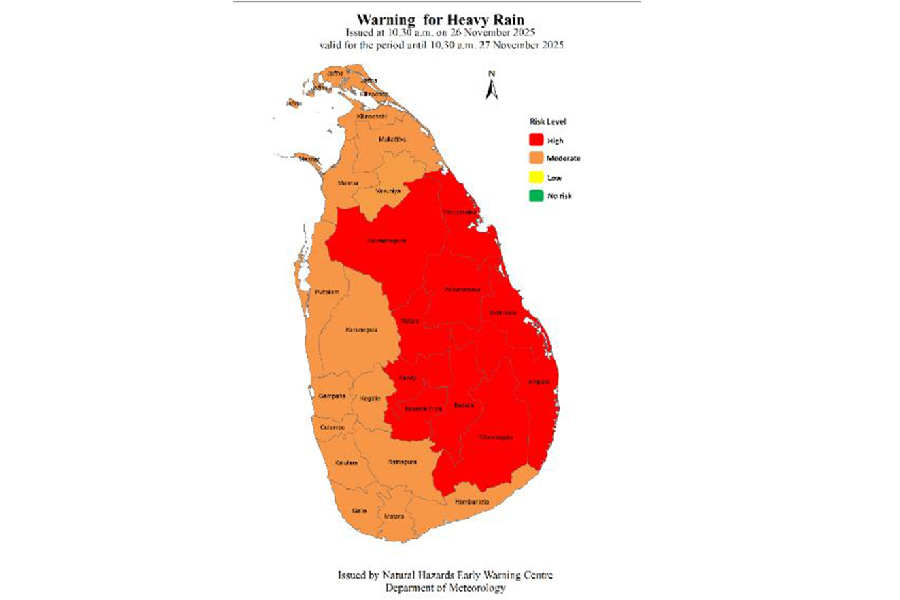 කාලගුණ විද්යා දෙපාර්තමේන්තුව විසින් 2025 නොවැම්බර් 26 වන පෙරවරුවේ නිකුත් කරන ලද නිවේදනය අනුව, දැනට පවත...